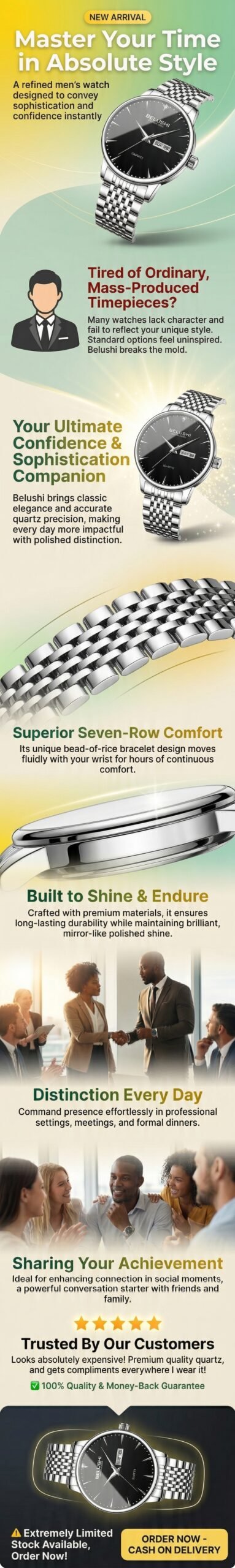 BELUSHI Men's Business Watch: Stainless Steel, Quartz, Waterproof, Perfect Gift