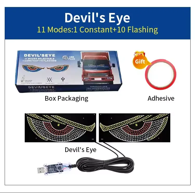 Devil Eye Car Windshield Light, Plug & Play USB LED Car Eye Light with 11 Demon Eye Signal Light Modes for Cars and Trucks